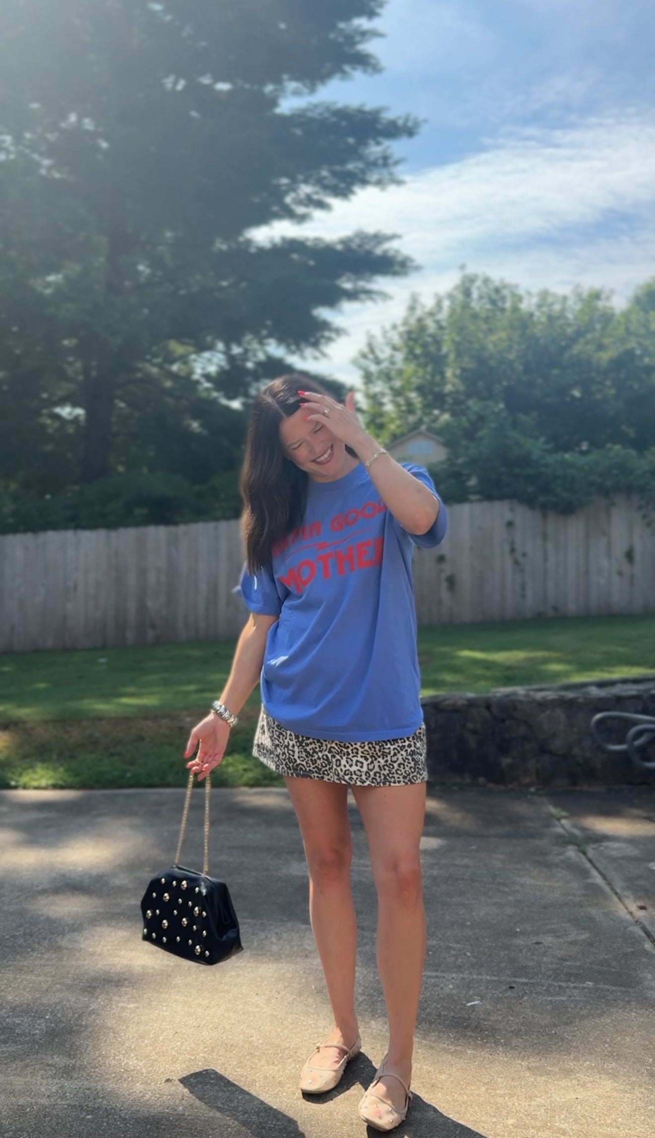 The Damn Good Mother Tee is made from ultra-soft, garment-dyed Comfort Colors cotton for that perfectly broken-in feel from day one. Bold red lettering pops against a vintage-wash periwinkle blue, making it the ultimate statement piece for school drop-offs, coffee runs, or a night out with your mom crew. With its relaxed, unisex fit, it’s easy to style front-tucked into jeans, paired with biker shorts, or layered under a denim jacket.