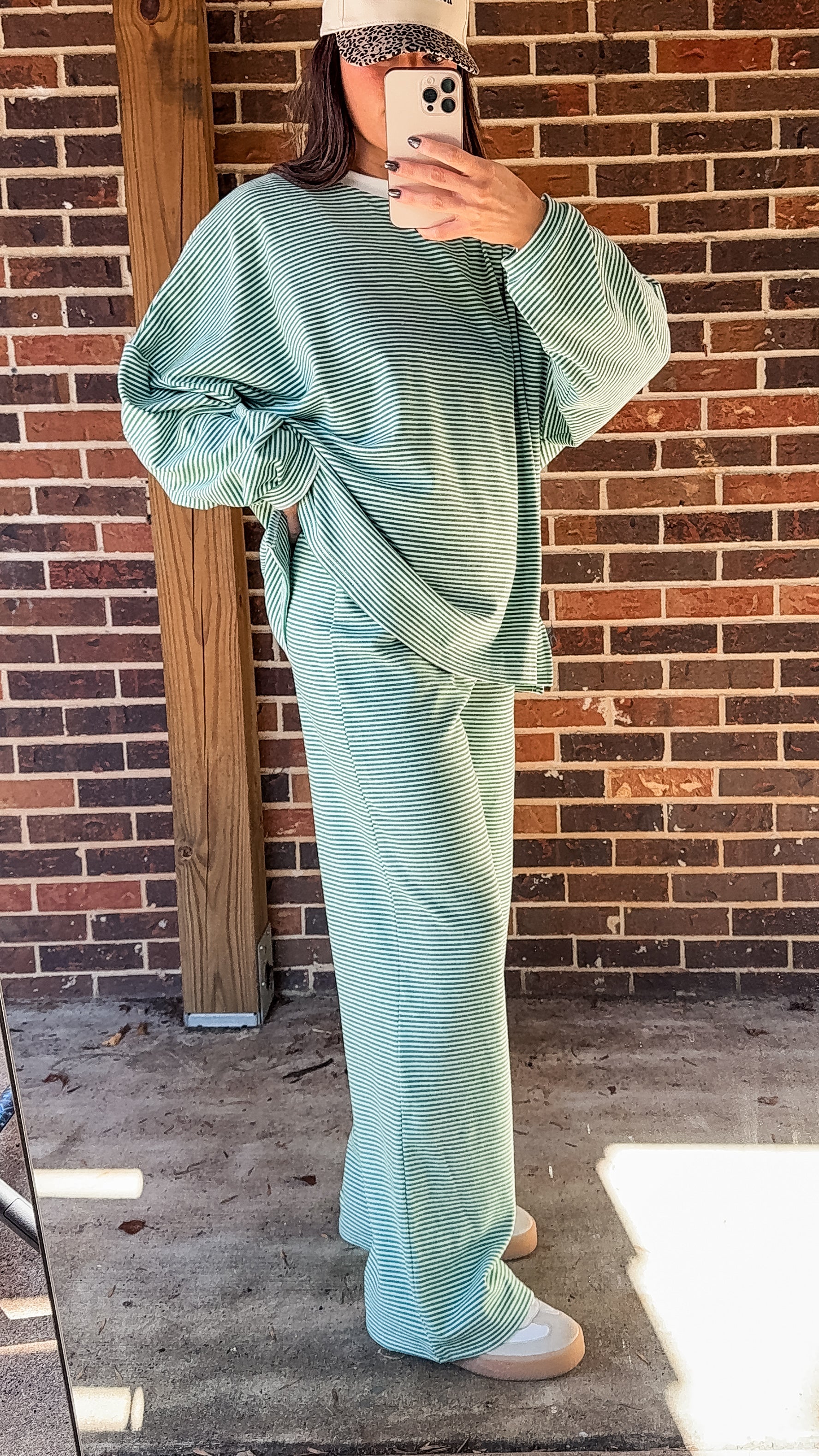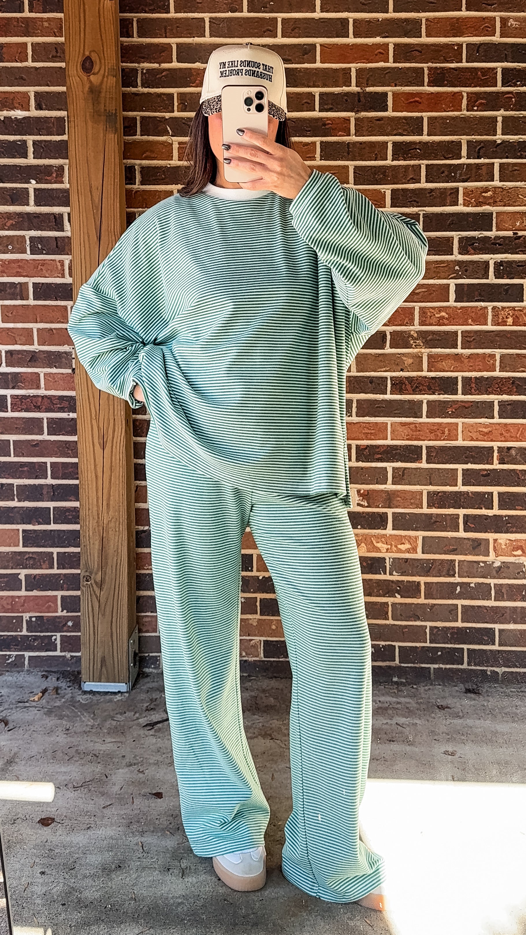 Designed with a relaxed, true-to-size fit, these pants offer easy all-day comfort without the oversized look of the top. The elastic waistband gives you that gentle, flexible hold while still feeling breathable and non-restrictive.
