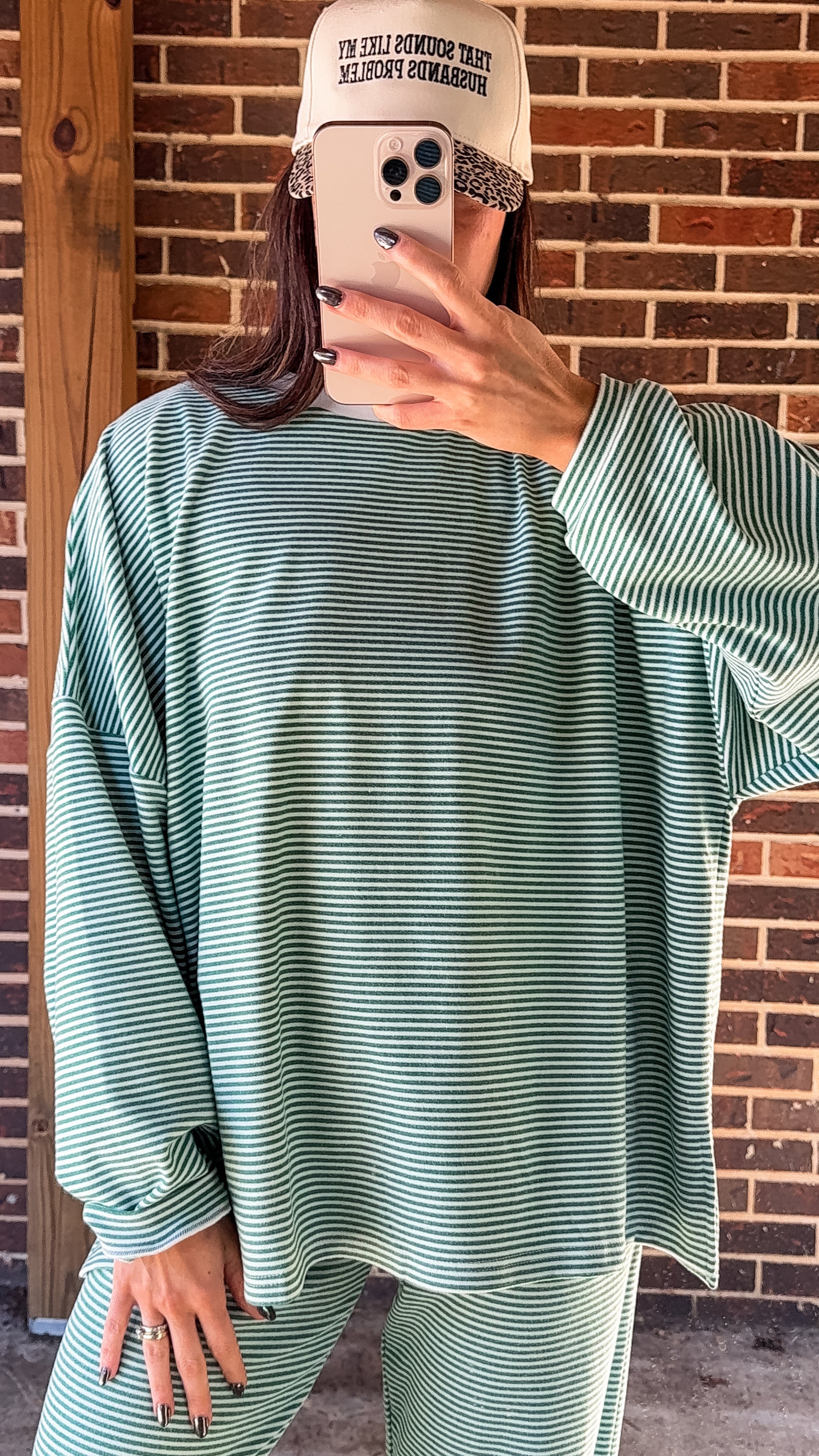 Meet the coziest oversized top you’ll wear all season. Part of our Cool & Collected Set (top and bottoms sold separately), this long-sleeve is all about that dreamy, cloud-soft comfort. The fabric has a buttery, velvety, short-haired teddy-bear feel that’s honestly stunning—lightweight yet warm, insanely soft, and unbelievably cozy without any of the bulk.